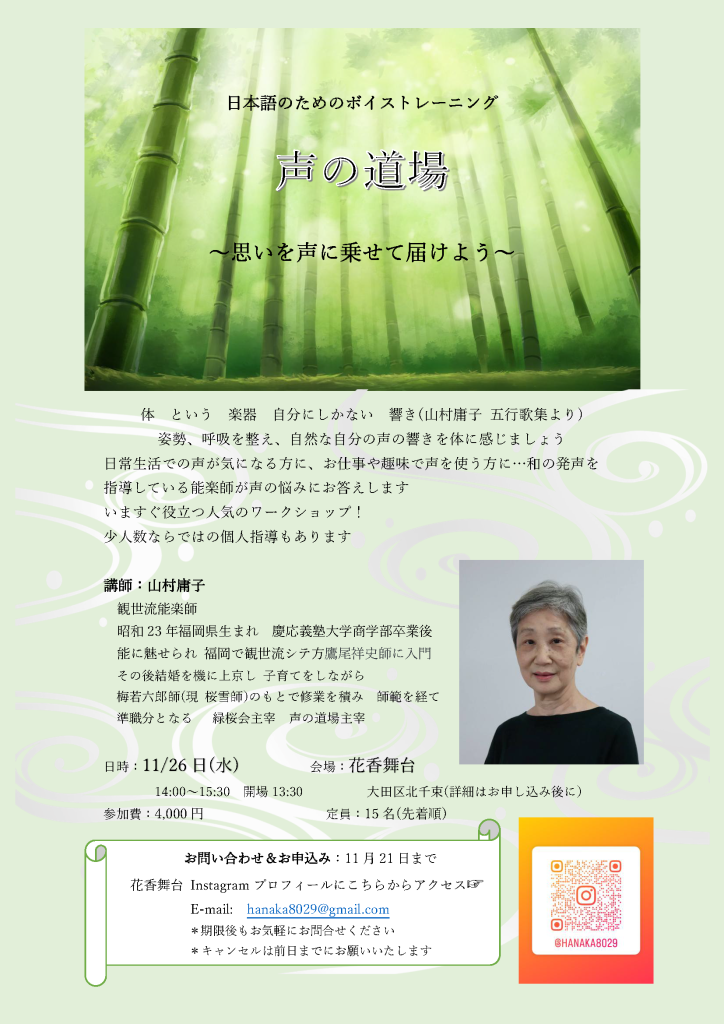 伝統文化交流協会でご紹介いただいた岡村様が、「声の道場」を企画してくださいました。